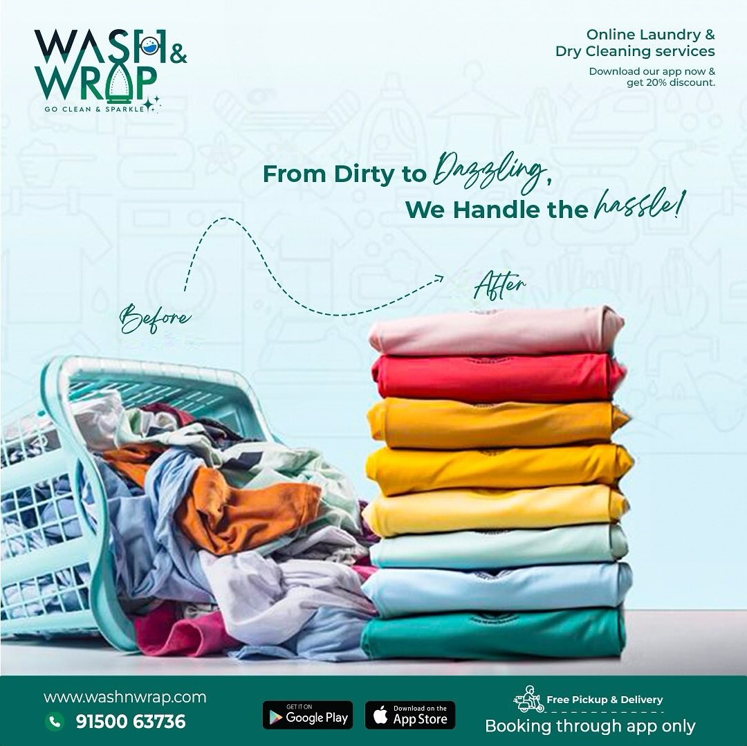 Tired of dealing with piles of dirty laundry? Let us take the hassle off your hands! At Wash & Wrap, we transform your clothes from dull and messy to fresh, clean, and perfectly folded. Whether it's everyday wear or delicate fabrics, our expert care ensures top-quality cleaning every time. ✨ Why Choose Us? ✔ Professional Laundry & Dry Cleaning ✔ Hygienic Cleaning Process ✔ Free Pickup & Delivery ✔ Easy Booking Through Mobile App ✔ Quick & Reliable Service Say goodbye to laundry stress and hello to freshness! Download our app today and enjoy exclusive discounts on your first order. 📞 Contact: 91500 63736 🌐 Website: www.washnwrap.com Wash & Wrap – Go Clean & Sparkle! ✨